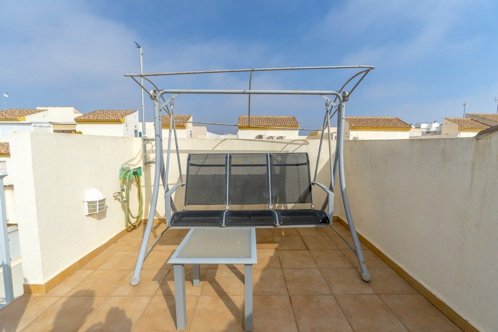 DUPLEX IN AGUAMARINA 200M FROM THE SEA Nice duplex in Aguamarina located 200 m from the seafront. Housing with an area of 70m², consists of 2 bedrooms, large living room, separate kitchen, two full bathrooms, terrace, 21m² garden and 10m² solarium with sea views. Northeast orientation. The property is being sold furnished. Residential with community pool. It is a few minutes walk from supermarkets, banks, pharmacies, and numerous bars, restaurants and bus lines.