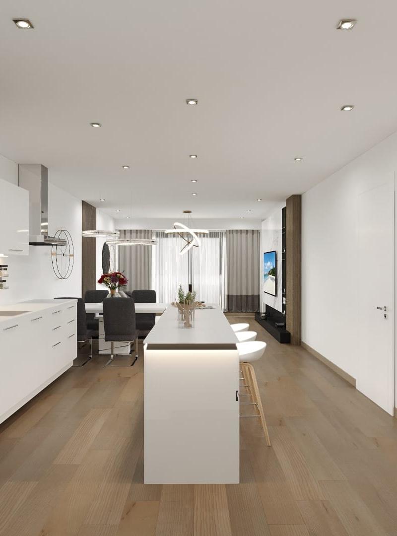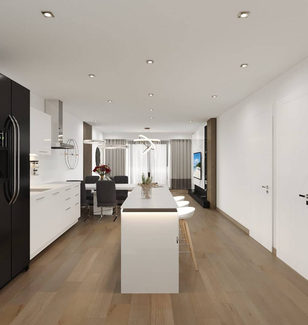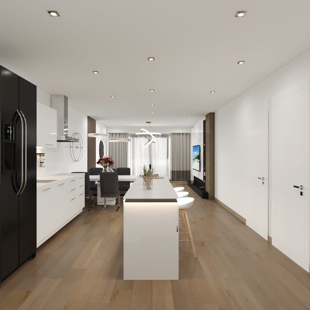 Like all the projects carried out by Alegria Construcciones, the homes are delivered with luxury finishes, PVC windows of the Salamander brand with noise reduction and thermal control, built-in cabinets, lighting, fully equipped kitchens with appliances of the main European manufacturers, as well as fully furnished bathrooms with shower screens.