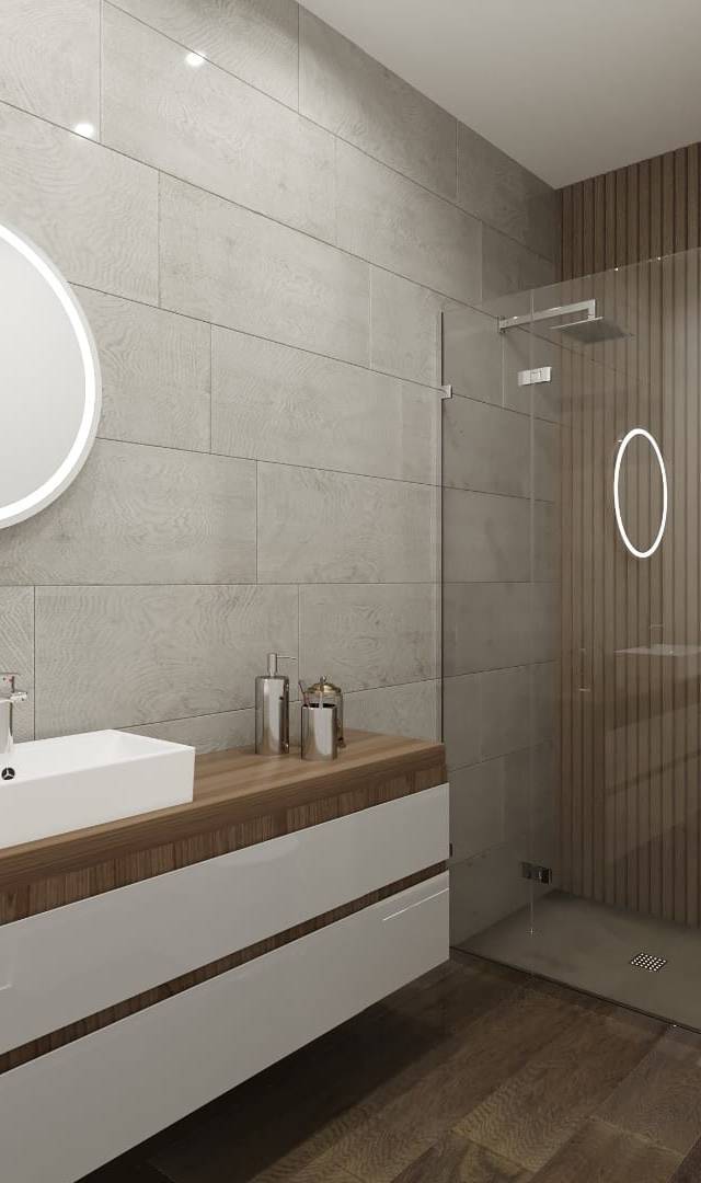 - bathrooms with sink units, mirrors, shower screens and underfloor heating systems
