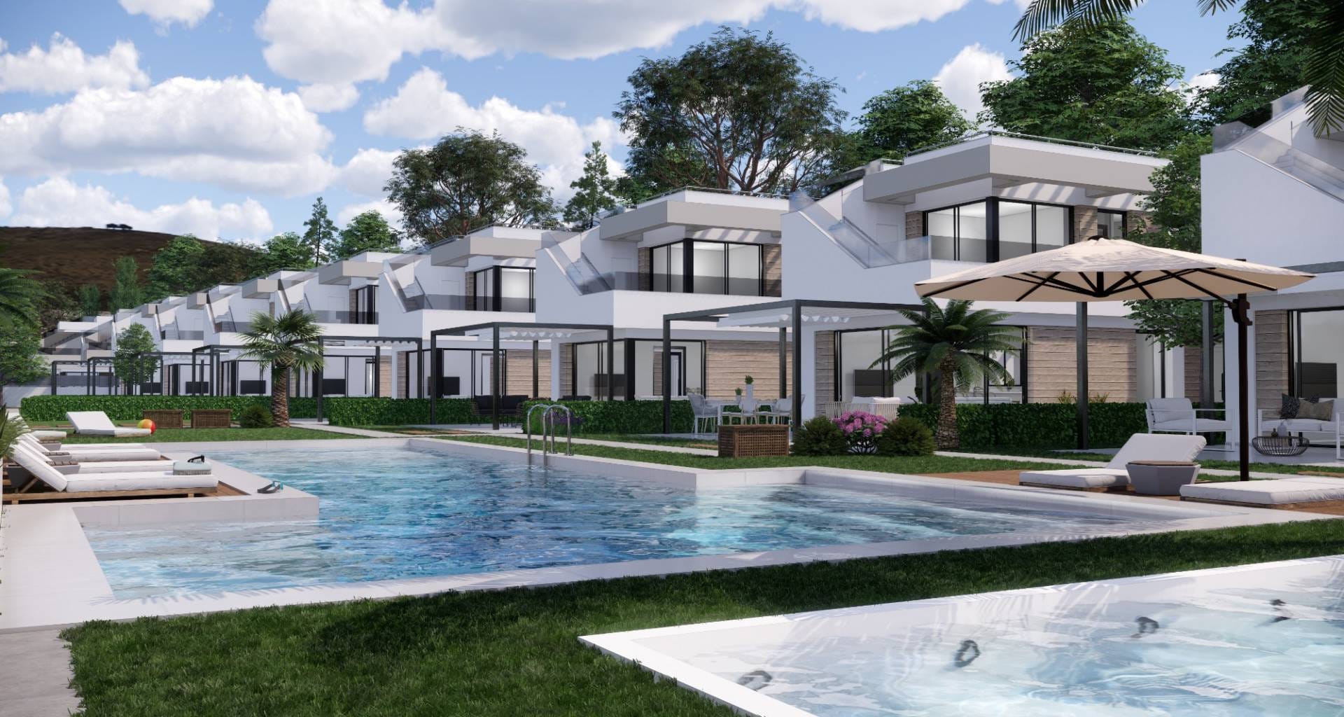 From 118 m2, terraces from 45 m2, prices fom 339.000 € and the price includes everything except the furniture, the community villas will be the excellent homes for you and your family. With a layout of three bedrooms and three bathrooms, the house will have all kinds of commodities to make your stay a wonderful one. It is only 100 m from the golf course Lo Romero and 5 min from the entertainment venues, including the beach, just 6 km away. It has southeast orientation. In addition, it has private parking space and fitted closets. And not only that, these villas have at your disposal a communal pool, an ideal area for barbecues and an outdoor space where you can play sports. Contact us for more information!