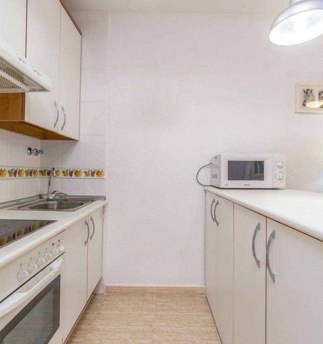 BUNGALOW IN RESIDENCIAL AGUAMARINA JUST 100 METERS FROM THE BEACH Ground floor bungalow in Residencial Aguamarina just 100 meters from the beach of Aguamarina (Campoamor) Consists of a large bedroom, a bathroom, living room, 15 meters backyard with storage room and terrace overlooking the green area. Residential located on the first line of the beach in Aguamarina. Common areas with large green areas and several swimming pools. Direct access to the beach. A few meters from supermarkets, restaurants, pharmacy, and various services.