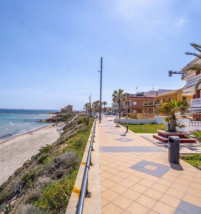 MODERN APARTMENT DUPLEX FIRST LINE IN LA TORRE DE LA HORADADA Modern, fully renovated south facing second floor duplex apartment, located on the first line of the Jesuitas beach, in Torre de La Horadada. The house has 113m² built, in a large living room, kitchen, bathroom and a terrace on the ground floor and 2 bedrooms, another bathroom and a terrace on the first floor. Spacious and bright, this property comes fully furnished with an equipped kitchen. Building without elevator. Direct exit from the urbanization to the promenade and the beach. Surrounded by all services.