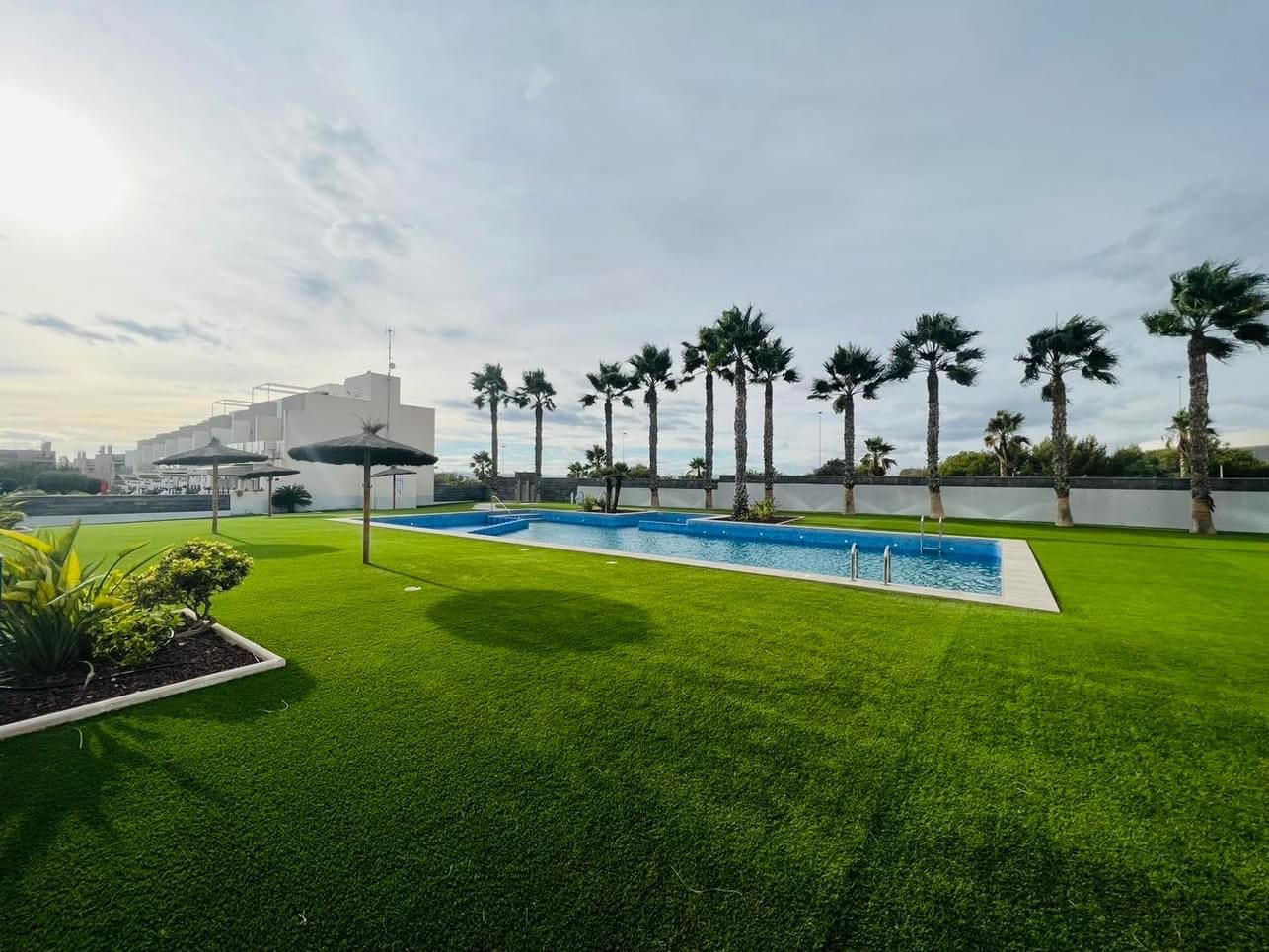 Luxurious Quad Villa with Amenities Galore in Aguas Nuevas, Torrevieja. Discover this captivating quad villa in Torrevieja, boasting 3 bedrooms, 3 bathrooms, a furnished basement, expansive terraces, and a delightful solarium. Enjoy the convenience of a communal swimming pool and a designated parking space within the urbanization.