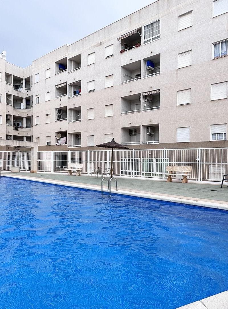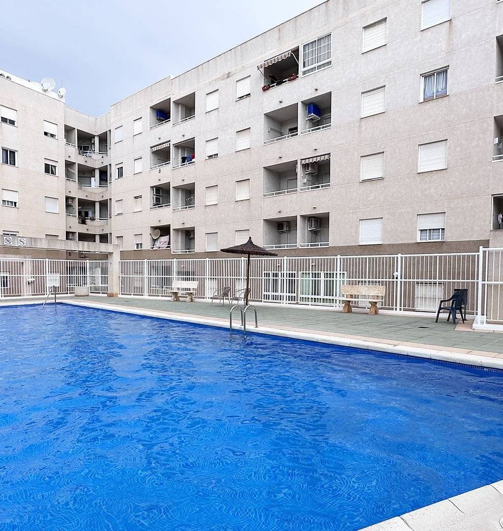 2 bedroom apartment recently renovated with garage and pool in Los Balcones. The property is sold with private parking, furniture, and electrical appliances.