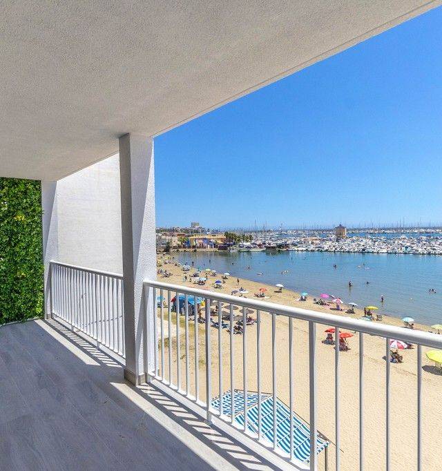 SEAFRONT APARTMENT IN ACEQUION, TORREVIEJA. Sea front apartment in Torrevieja on Acequion beach, first line. Ccompletely renovated, with the surface of 110 m 2, it has three bedrooms and two bathrooms. It is sold with the kitchen furnished and equipped, and bathroom screens included. No furnished. A/A through installed duct. It is close to all services, health center, supermarket, school, buses, etc… 5 minutes from the center on foot. Contact us for more information!