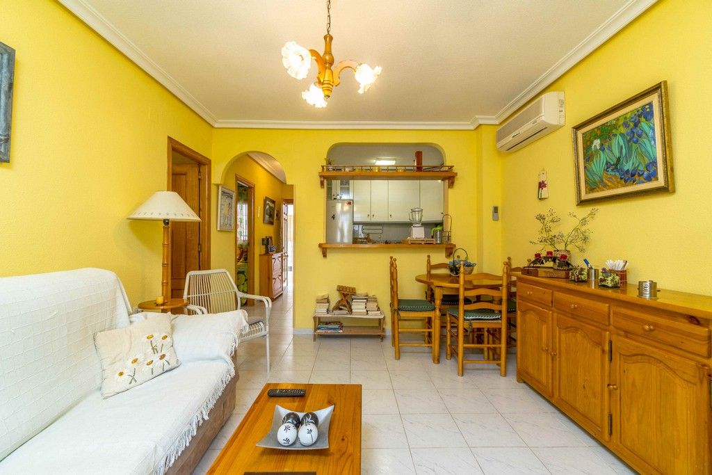 NICE GROUND FLOOR APARTMENT OVERLOOKING THE POOL AT RESIDENCIAL VIÑAMAR VI IN LA MATA BEACH. Nice ground floor apartment facing north and overlooking the pool at Residencial Viñamar VI in La Mata Beach. Consists of two large bedrooms, a bathroom with shower, kitchen and living room. It also has a large terrace equipped with awnings. The house is sold partially furnished and includes air conditioning in the living room. Residential with communal pool and green areas. Just 300 meters from the famous La Mata Beach. Next to supermarkets, restaurants, pharmacy, health center and several stores. Terrace surface: 12m²