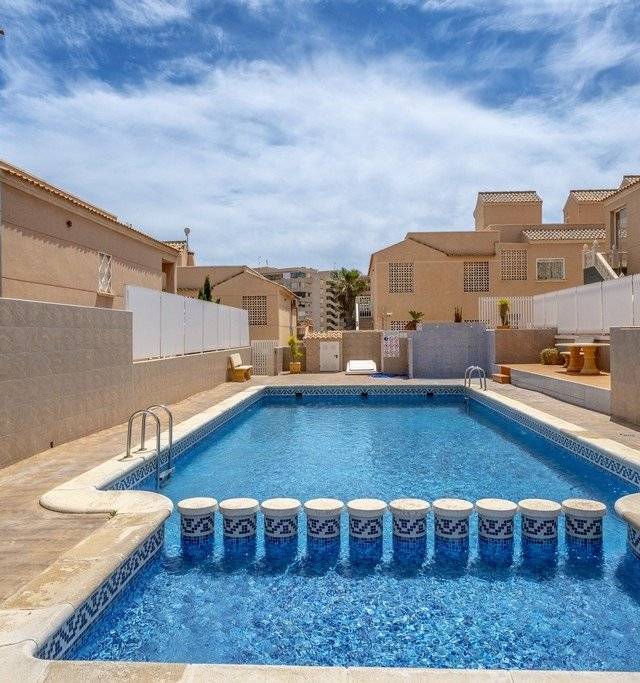RENOVATED DUPLEX IN CABO CERVERA WITH SEA VIEWS 100 M FROM THE BEACH Duplex in Cabo Cervera 100 m from the beach and with the sea views. South facing. Newly renovated house, consists of 2 bedrooms with fitted wardrobes, a toilet on the ground floor, full bathroom on the first floor, bright living room, kitchen. It sold furnished with appliances. Solarium of about 20m² with sea views. Two storage rooms. Option- Parking space in the underground garage. Residential with the pool. Price before: 199.000€
