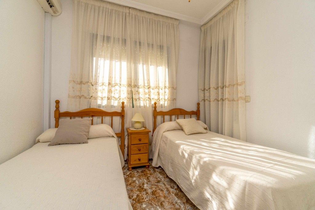 BEAUTIFUL TOWNHOUSE WITH 3 BEDROOMS LOCATED IN LA ZENIA, 600M FROM THE BEACH. Beautiful three-storey townhouse with 3 bedrooms located in La Zenia, 600 m from the beach. The house with the area of 100m² has the following distribution: On the ground floor are the living room, large kitchen of about 15 m2 with access to the garden, and a toilet. On the first floor there are two bedrooms and a bathroom; on the second floor another bedroom and glazed terrace that is used as a fourth bedroom. All rooms and terrace have air conditioning installed. The house is sold fully furnished and with appliances. Private residential with communal pool. Close to all services and 0.6 km from the beach. Ideal to live all year or spend a vacation. Terrace surface: 25m²