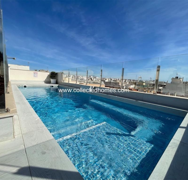 Fantastic apartment in the heart of Torrevieja. This third floor apartment is only 60m from the popular Playa del cura beach and with a shared rooftop pool. Sea view from the balcony. The property consists of 3 bedrooms and 2 bathrooms. Optimal for the family or really good investment for rental. Year of construction: 2020 Contact us for more information.