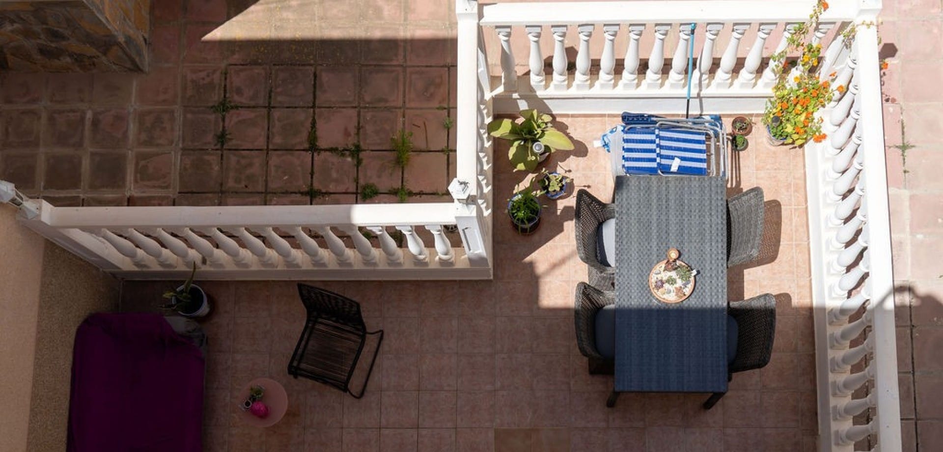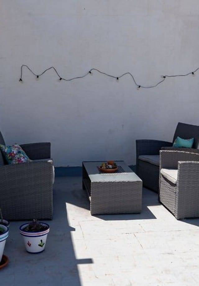 Up another flight of stairs we find the lovely solarium where we can enjoy sun all day and sea views. Contact us for more information!