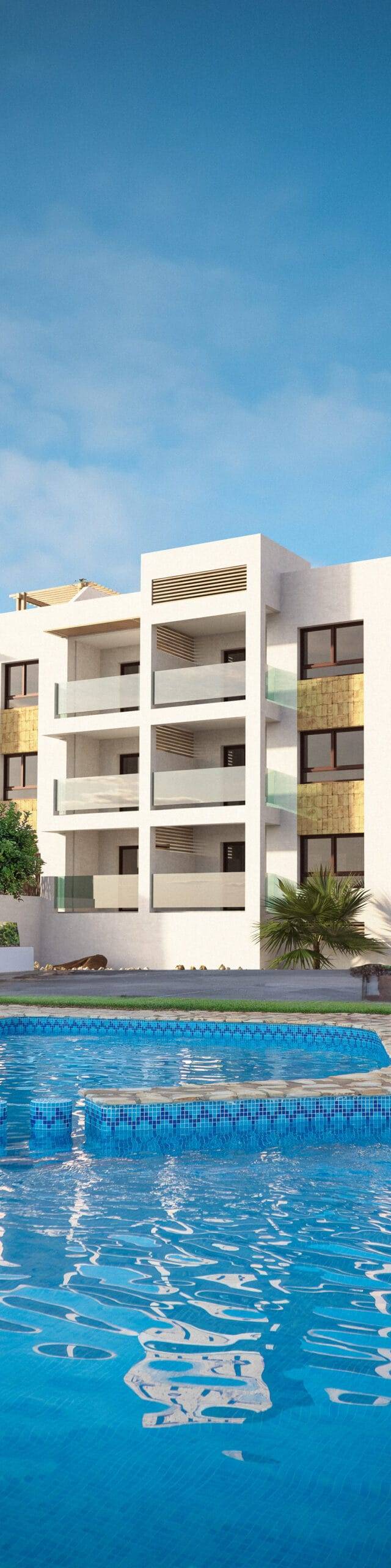 New built apartments near golf and nature in Villamartin. Modern two-bedroom apartments with sunny terraces located near the golf course and natural surroundings in Villamartin. This stylish complex featuring 12 apartments across three levels. Choose your ideal sunlit home from options including ground floor units with gardens, mid-level apartments with balconies, or penthouses boasting private rooftop terraces. Each apartment offers an open-concept design integrating the living room, dining area, and kitchen. They include two spacious bedrooms with built-in wardrobes and two bathrooms, with the master bedroom enjoying an en-suite bathroom. Many of these properties come with a private parking space and a storage room included in the price. Just a few minutes from the complex, you'll find Villamartin Plaza, a commercial area with all essential amenities, delightful restaurants, and cozy cafes. A short drive away are the expansive La Zenia Boulevard shopping center, the renowned Villamartin golf course, and the stunning beaches of Orihuela Costa. Prices from 195.000 EURO. Contact us for more information!