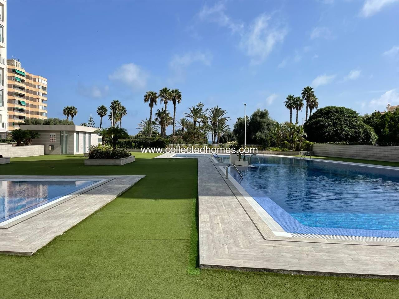 Collected Homes presents this lovely ground floor apartment with large patio in La Mata. The apartment is located in a very popular urbanization, only 250 meters to the La Mata beach. It consists of 2 bedrooms and 2 bathrooms where one bedroom is one-suite. There is an open floor plan between the kitchen and the living room, and there you come out to the lovely large patio with private parking and an outdoor shower. A lovely and large pool area with a sea view and the price also includes a storage room.
