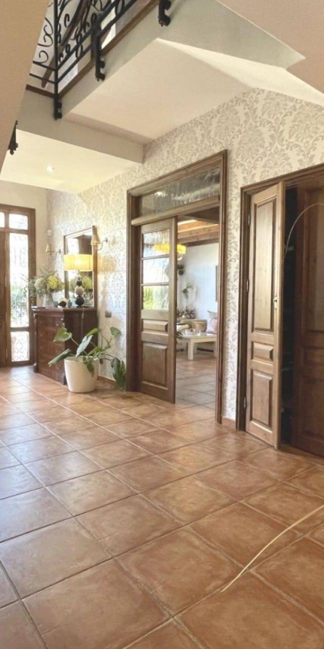 The house consists of 5 bedrooms, 4 bathrooms, several living rooms and living rooms as well as a spacious kitchen with connection to the laundry room and basement.