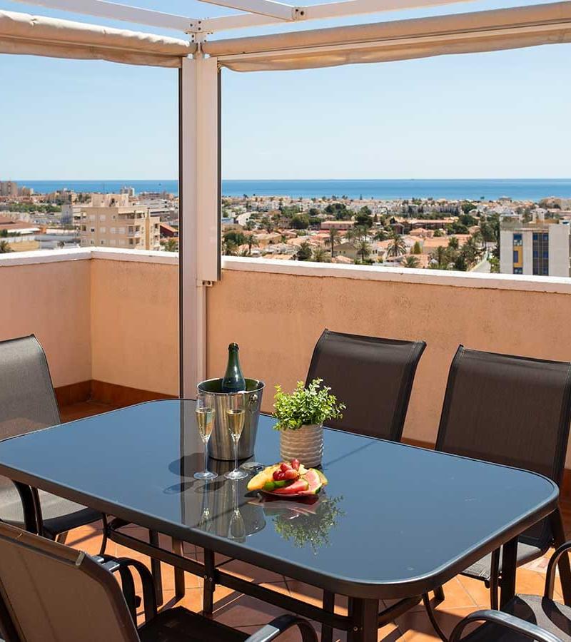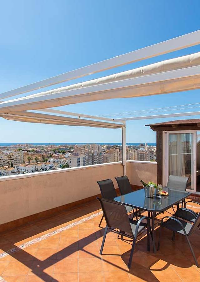 A warm welcome to the home that has everything! Nice floor plan distributed in three bedrooms, two bathrooms and a terrace of 50m2 with 270 degree views of the city, sea, salt lakes and mountains on the horizon. All homeowners in the community also have access to a lovely communal pool area for the lazy days that you do not want to go to the beach. The apartment is located in a quiet area close to a large selection of restaurants, grocery stores and the popular Friday market.